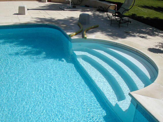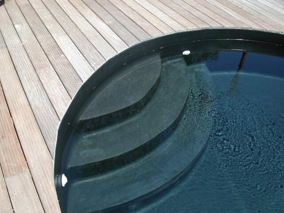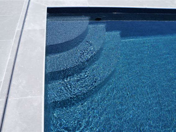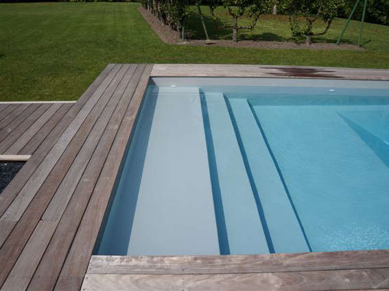 Nous préconisons la mise en place d'escalier recouvert par liner permettant de conserver une couleur intérieure piscine uniforme.