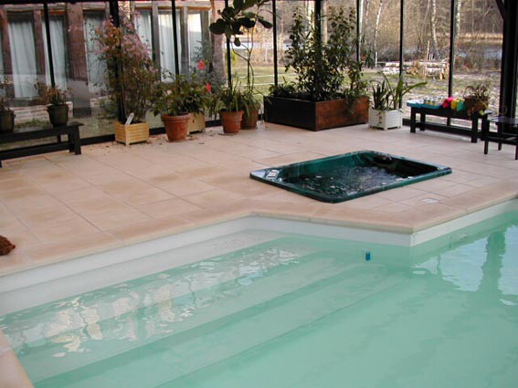 L'escalier roman est quand à lui un grand classique pour piscine, parfaitement adapté pour la piscine extérieure, il se révèle imposant en intérieur.